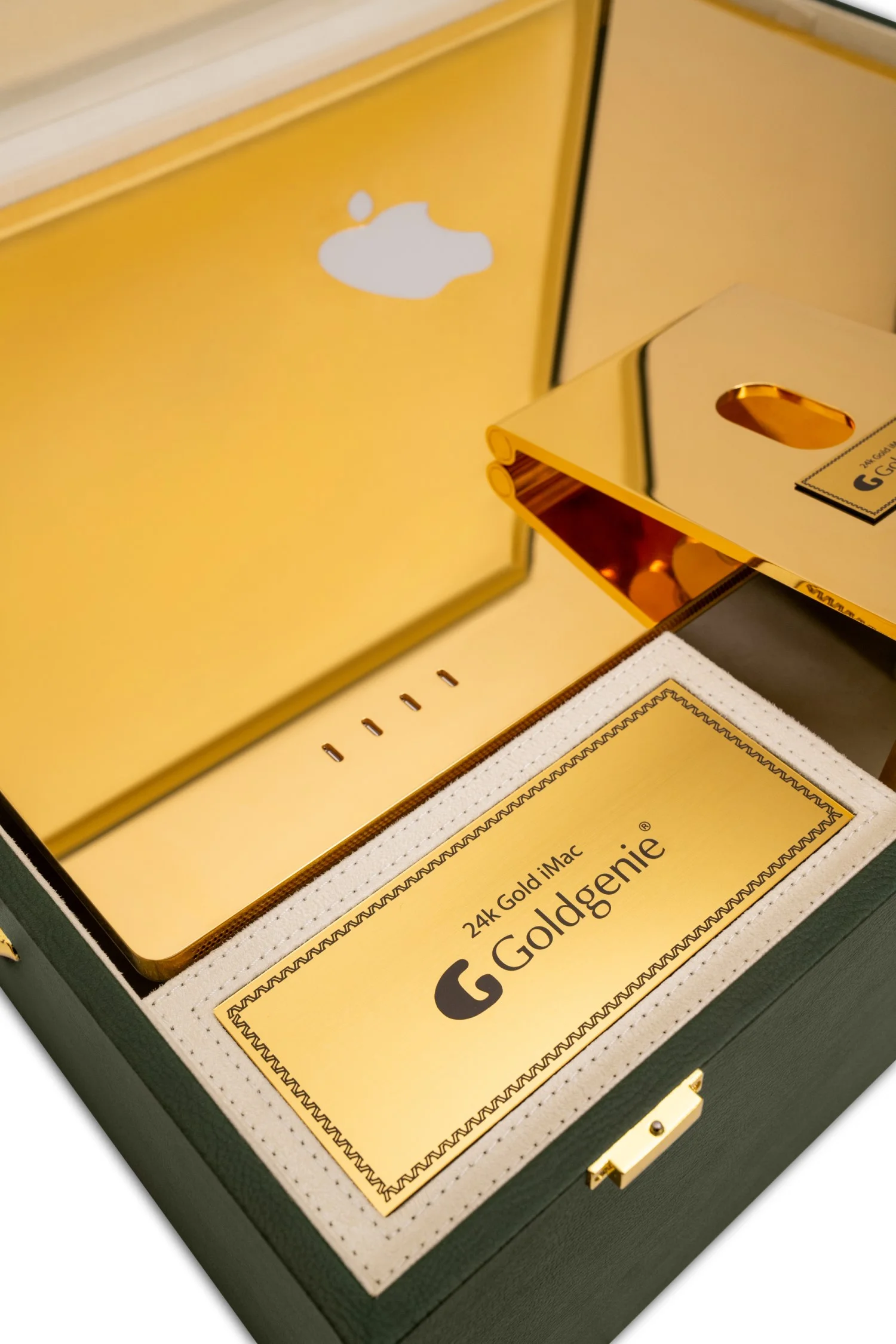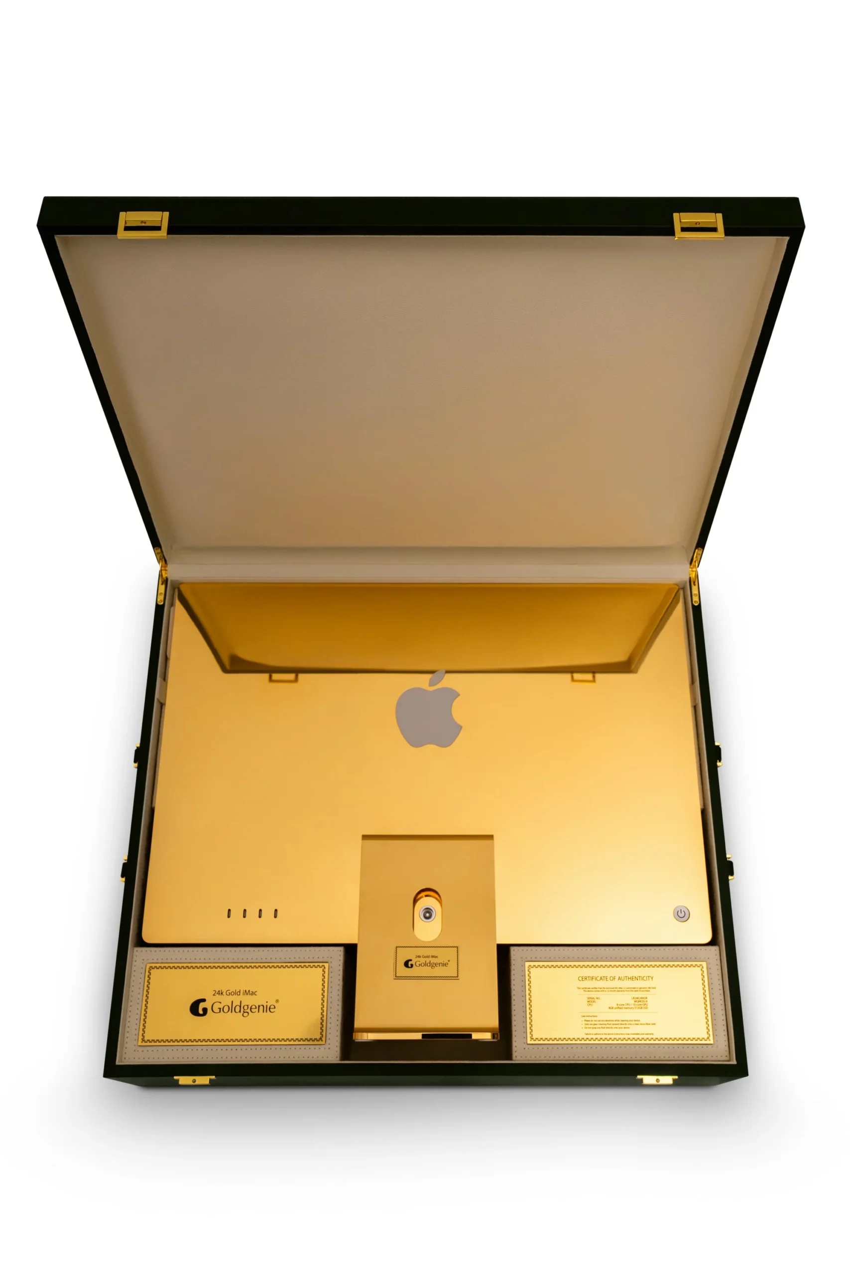Available exclusively through the Goldgenie website or at our luxury retail store in Dubai, each 24K Gold iMac is accompanied by a certificate of authenticity and a lifetime warranty, a true testament to elegance, performance, and enduring value.
