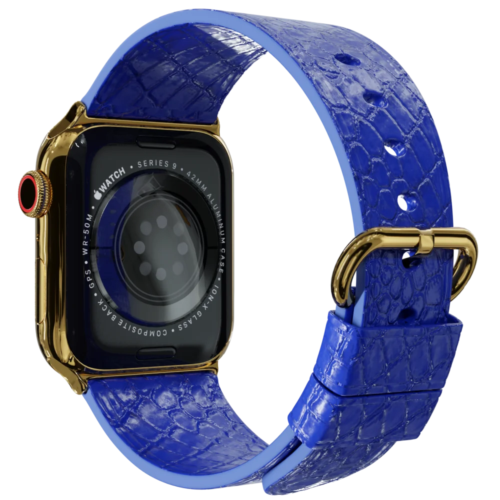 The Gold Apple Watch 10 with Blue Python Strap is unlike no other. By syncing with your calendar, your notes, and your schedule. It understands your personal use of time and allows for seamless management of your life.