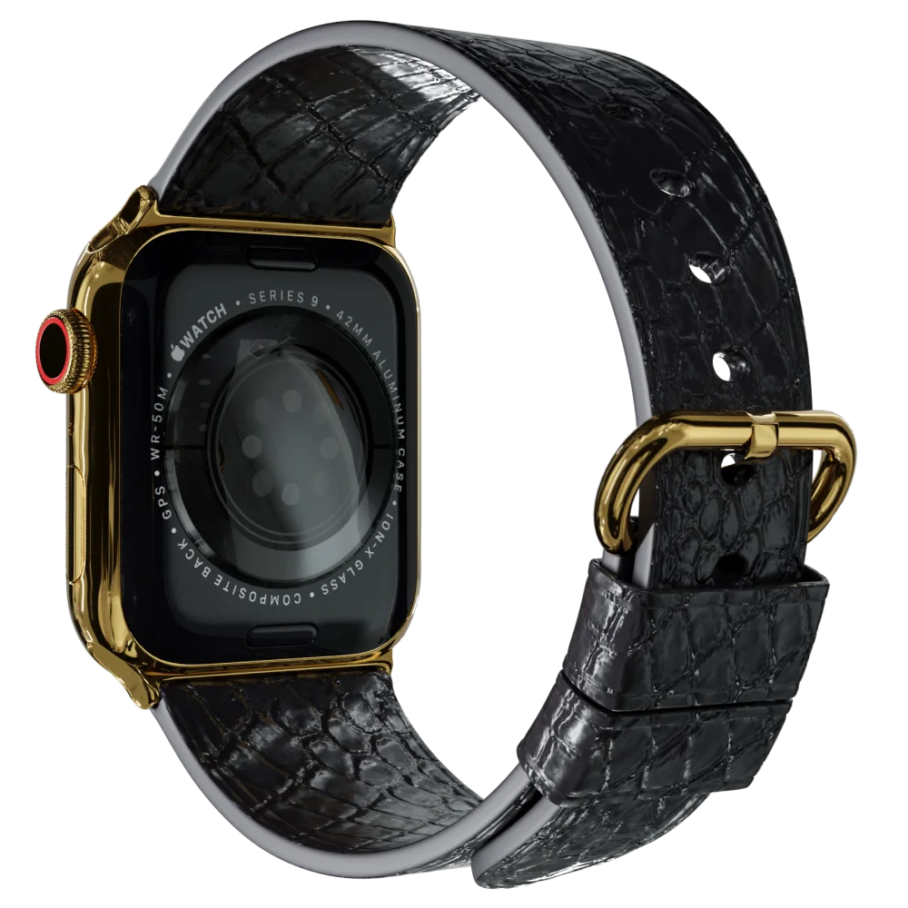 • Luxury 24k Gold Apple Watch 11 with Black Python strap